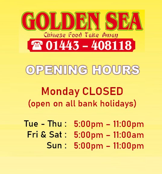 Golden Sea @Treforest, Pontypridd  Chinese Takeaway serves variety of delicious Chinese dishes. We’re passionate about delivering hot, great tasting, freshly prepared Chinese food to our customers